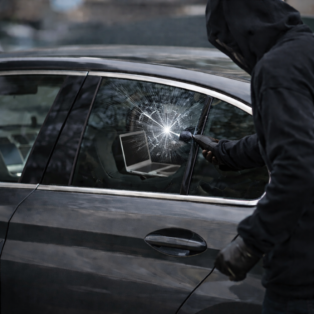 Most smash-and-grab incidents take only seconds. Criminals target vehicles where valuables are visible and access is easy. Standard vehicle glass breaks quickly on impact, allowing immediate entry.